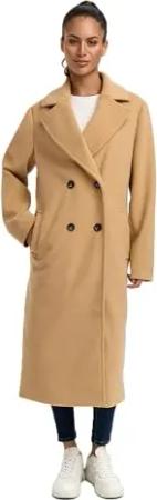 Damen Mantel in Woll-Optik langer klassischer Trenchcoat Frostjuwel 14 Camel Gr. L