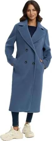 Damen lange Übergangsjacke Mantel in Woll-Optik mit Reverskragen Sternlein 14 Dusty Blue Gr. XL