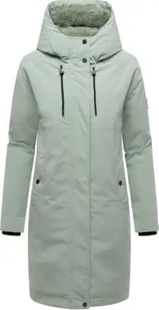 Damen Langer Wintermantel warmer Steppmantel mit hohem Kragen und zur Hälfte kuscheligem Fleece-Innenfutter Mondnebel XIV Smokey Mint Gr. XXL