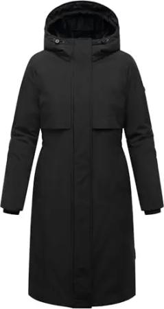 Damen Langer Mantel warmer Parka mit großer Kapuze und magnetischen Details Eismelodie 14 Black Gr. XL