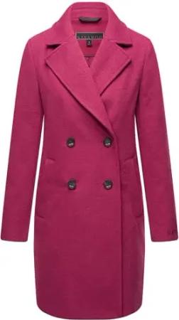 Damen lange Übergangsjacke Mantel in Woll-Optik mit Reverskragen Sternlein 14 Berry Wine Gr. XS