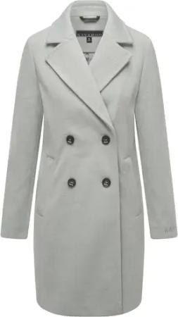 modischer Damen Übergangsmantel in Woll-Optik Trenchcoat mit Rippstrick-Ärmeln Polarblüte 14 Ice Blue Gr. XS