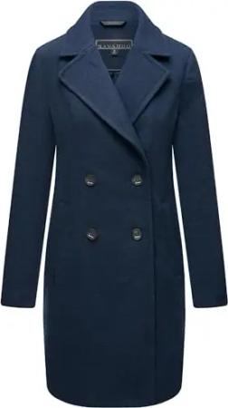 Damen Mantel in Woll-Optik langer klassischer Trenchcoat Frostjuwel 14 Navy Gr. L