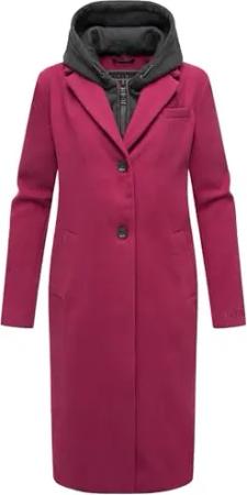 Damen Mantel in Woll-Optik langer Trenchcoat leicht oversized mit (abnehmbarem) Kapuzen-Einsatz aus Sweat-Material Kekstraum 14 Berry Wine Gr. L