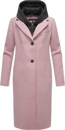 Damen Mantel in Woll-Optik langer Trenchcoat leicht oversized mit (abnehmbarem) Kapuzen-Einsatz aus Sweat-Material Kekstraum 14 Lilac Rose Gr. M