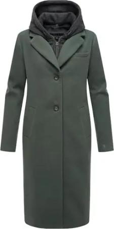Damen Mantel in Woll-Optik langer Trenchcoat leicht oversized mit (abnehmbarem) Kapuzen-Einsatz aus Sweat-Material Kekstraum 14 Stone Green Gr. L