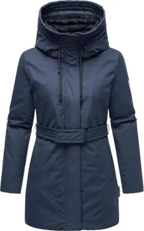 Damen Parka lange Winterjacke warm mit Taillengürtel und (abnehmbaren) Fleece-Kragen Eishauch 14 Navy Gr. L