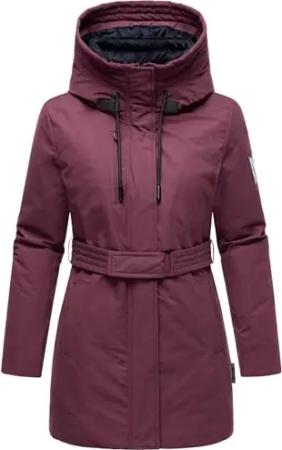 Damen Parka lange Winterjacke warm mit Taillengürtel und (abnehmbaren) Fleece-Kragen Eishauch 14 Wine Gr. L