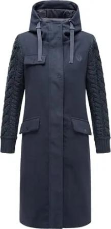 Damen warmer Trenchcoat in Woll-Optik mit Strick-Ärmeln und Kapuze Knit Babe 14 Navy Gr. M