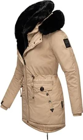 Damen langer Wintermantel warmer Parka mit hohem Stehkragen und magnetischer Abdeckleiste Traumblüte 14 Beige Gr. 3XL