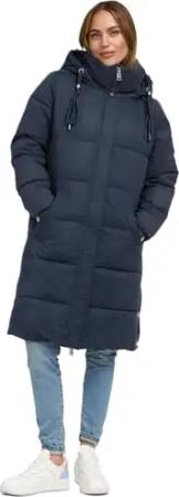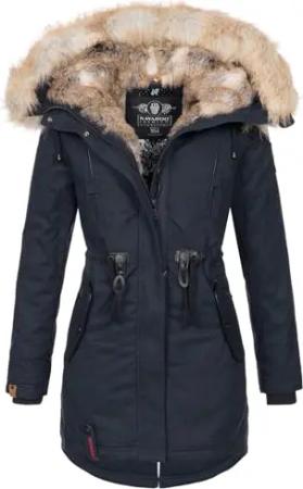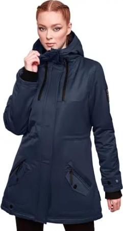 Damen Mantel lange warme Winterjacke mit Kunstfell und Kapuze (beides abnehmbar) Kaltwetterretter 14 Stormy Blue Gr. M