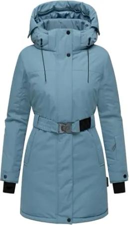 Damen Wintermantel warmer Parka mit abnehmbarer Kapuze und Taillengürtel Frostkuss 14 Powder Blue Gr. M