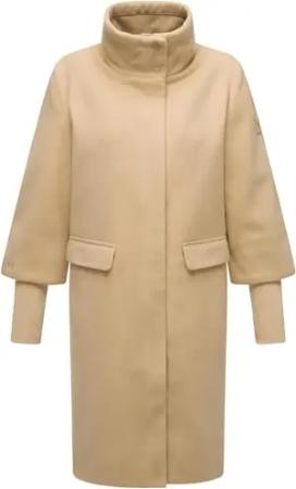 modischer Damen Übergangsmantel in Woll-Optik Trenchcoat mit Rippstrick-Ärmeln Polarblüte 14 Beige Gr. M