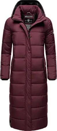 Damen Langer Wintermantel warmer Steppmantel mit hohem Kragen und zur Hälfte kuscheligem Fleece-Innenfutter Mondnebel XIV Wine Gr. 4XL