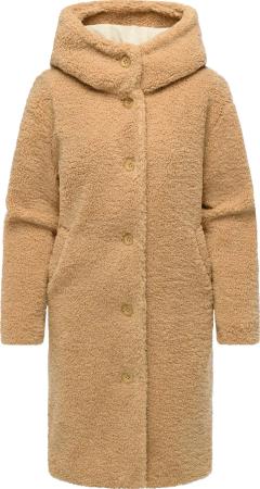 Damen Teddymantel langer Wintermantel Plüschmantel mit Knopfleiste und Kapuze Joonie YOUMODO Camel Gr. L