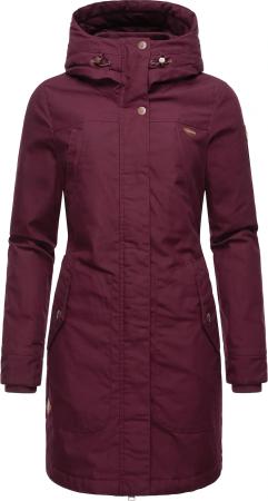 Damen langer Mantel warme Winterjacke mit Kapuze YM-Canny Wine Red22 Gr. XS