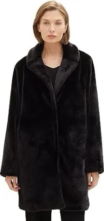 Zweireihiger Oversize Mantel In Wolloptik Mit Kunstfell-Detail - Black - 40, Black