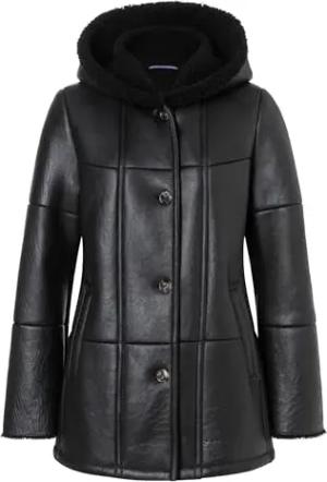 Damen Lammfelljacke VIVI aus echtem Leder, Lammfell, Fell, warme Winterjacke mit Kapuze - bequem, warm und hochwertig in Schwarz, in Gr. 46