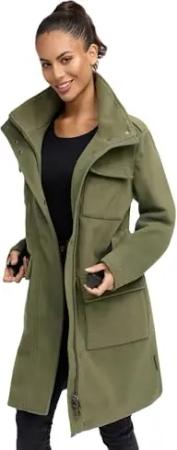 Damen Übergangs Mantel (XS-XXL) - Damen Mantel mit 2 Wege Reißverschluss und Druckknöpfen, Warme Jacke Frauen - N053 (L, OliveLeaf)