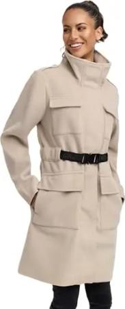 Damen Übergangsmantel (XS-3XL) - Eleganter Mantel mit Taillengürtel, abnehmbarer Kapuze, 2-Wege-Reißverschluss, Warme Jacke Frauen - N047 (XL, Bone)