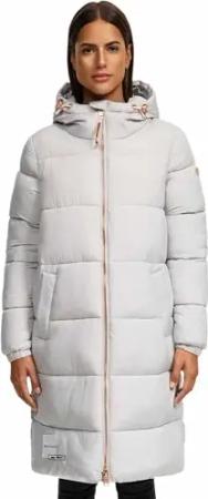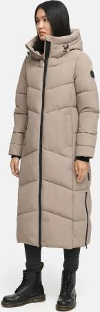 Damen Wintermantel Warmer Steppmantel lang mit Verstellbarer Kapuze Armasa Taupe Grey Gr. S