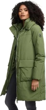 Damen Winterjacke (S-3XL) - zum Teil mit Magnetverschluss, länger geschnitten, große Kapuze, Warme Jacke Frauen - N023 (XL, Pine-Olive)