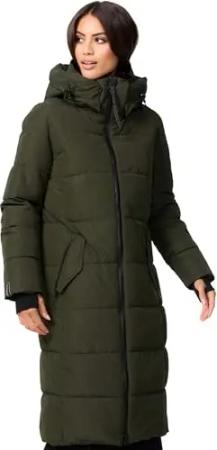 Damen Winterjacke Stepp Winter Jacke gesteppt lang warm Kapuze B989 [B989-Zurar-Dark-Olive-Gr.L]
