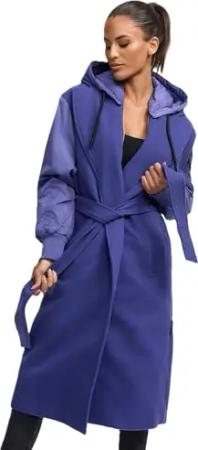 Damen Übergangsmantel (XS-3XL) - Eleganter Wickel Mantel mit Taillengürtel, Oversized Hood Kapuze, Warme Jacke Frauen - N046 (M, BlueViolet)