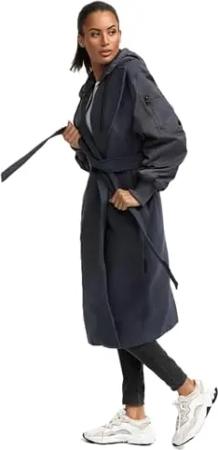 Damen Übergangsmantel (XS-3XL) - Eleganter Mantel mit Taillengürtel, abnehmbarer Kapuze, 2-Wege-Reißverschluss, Warme Jacke Frauen - N047 (3XL, Navy)