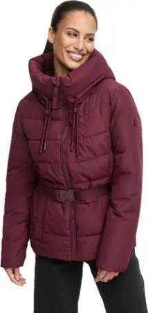 Damen Winterjacke (XS-XXL) - gesteppt, mit Kapuze, Taillengürtel - N073 - Wine Größe L - Gr.L