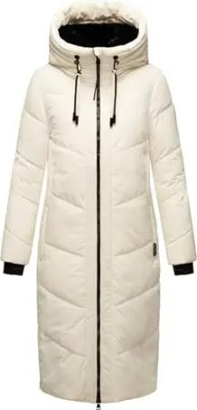 Damen Wintermantel Warmer Steppmantel elegant lang jacke Mantel warm gefüttert mit große Kapuze und hohem Kragen Nadaree XVI XS-XXL (DE/NL/SE/PL, Alphanumerisch, XL, Regular, Regular, Off White)
