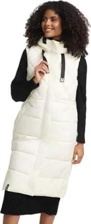 Damen Winterweste (XS-3XL) - Steppweste, lang, teils mit Magnetverschluss, verstellbare Kapuze, Warme Weste Frauen - N018 (M, Offwhite)