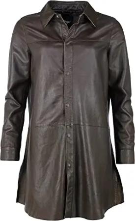 Damen Hemdkleid Aus Leder 42021101 Dark Brown