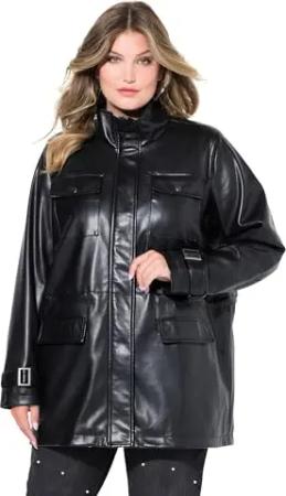 Damen große Größen Übergrößen Plus Size Jacke, Lederoptik, Tunnelzug in der Taille schwarz 48 834980100-48
