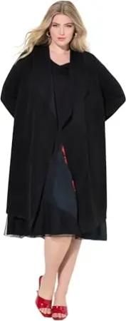 Damen große Größen Übergrößen Plus Size Mantel, Lange A-Linie, offene Form, Reverskragen schwarz 44 843152100-44