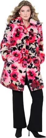 Damen große Größen Übergrößen Plus Size Plüschmantel, Straight Fit, Rosendruck karamell 46 834435302-46