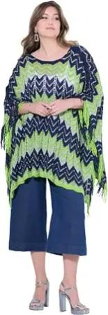 Damen große Größen Übergrößen Plus Size Poncho, Oversized, Zackenstrick mit Glitzer dunkelblau 42-48 840120750-1+