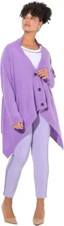 Damen große Größen Übergrößen Plus Size Strickjacke, Cape-Look, Knopfleiste, Langarm Lavendel 54+ 833983814-54+