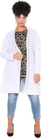 Damen große Größen Übergrößen Plus Size Strickjacke, längere A-Linie, Strukturmix, Wellensaum Offwhite 46+ 839282200-46+