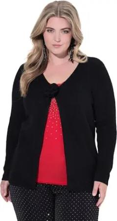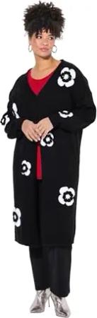 Damen große Größen Übergrößen Plus Size Strickjacke, Straight Fit, 3D-Rose als Verschluss schwarz 50+ 843948100-50+
