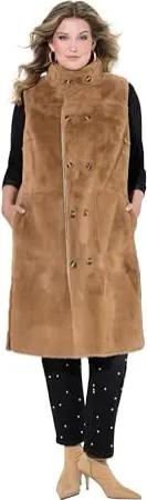 Damen große Größen Übergrößen Plus Size Wende-Weste, Lederoptik/Teddyplüsch, Seitenschlitze beige 46+ 833990312-46+