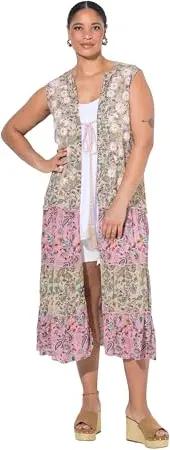Damen große Größen Übergrößen Plus Size Weste, Lange A-Linie, Blüten-Stickerei, Musterstreifen Champagner beige 48 840155313-48