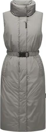 Damen ärmellose lange Outdoorweste warme Winterjacke mit Taillengürtel und Magnet-Flap Abendlied XIV Grey Gr. S
