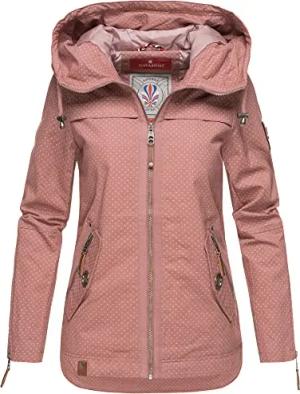 Damen Jacke Frühling Übergangsjacke Baumwolle Parka Mantel Kapuze Wekoo XS - 3XL (DE/NL/SE/PL, Alphanumerisch, S, Regular, Regular, Rose mit Print)