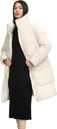Damen Extralanger Wintermantel warmer Steppmantel mit Taillengürtel Eisblick 14 Off White Gr. XL