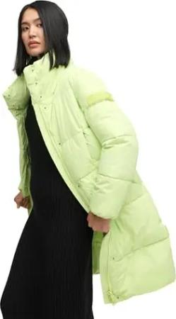 Damen knielanger Wintermantel warmer Steppmantel mit hohem, gefütterten Kragen Wolkenkuss 14 Pastell Lime Gr. L