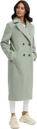 Damen lange Übergangsjacke Mantel in Woll-Optik mit Reverskragen Sternlein 14 Smokey Mint Gr. XL
