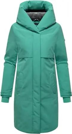 Damen Wintermantel warmer, wasserabweisender Parka mit (abnehmbarer) Kapuze und Taillengürtel Waldbummler 14 Smokey Mint Gr. 3XL