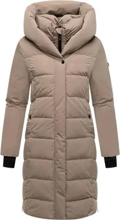 Damen Wintermantel warmer Steppmantel mit 2-Wege Reißverschluss, wasserdichten Reißverschlüssen und verstellbarer Kapuze Schokokuss XIV Taupe Grey Gr. 6XL