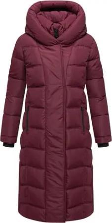 Damen Langer Wintermantel warmer Steppmantel mit innenliegenden Rucksackträgern und Magnet-Knöpfen Engelsfeder XIV Wine Gr. L